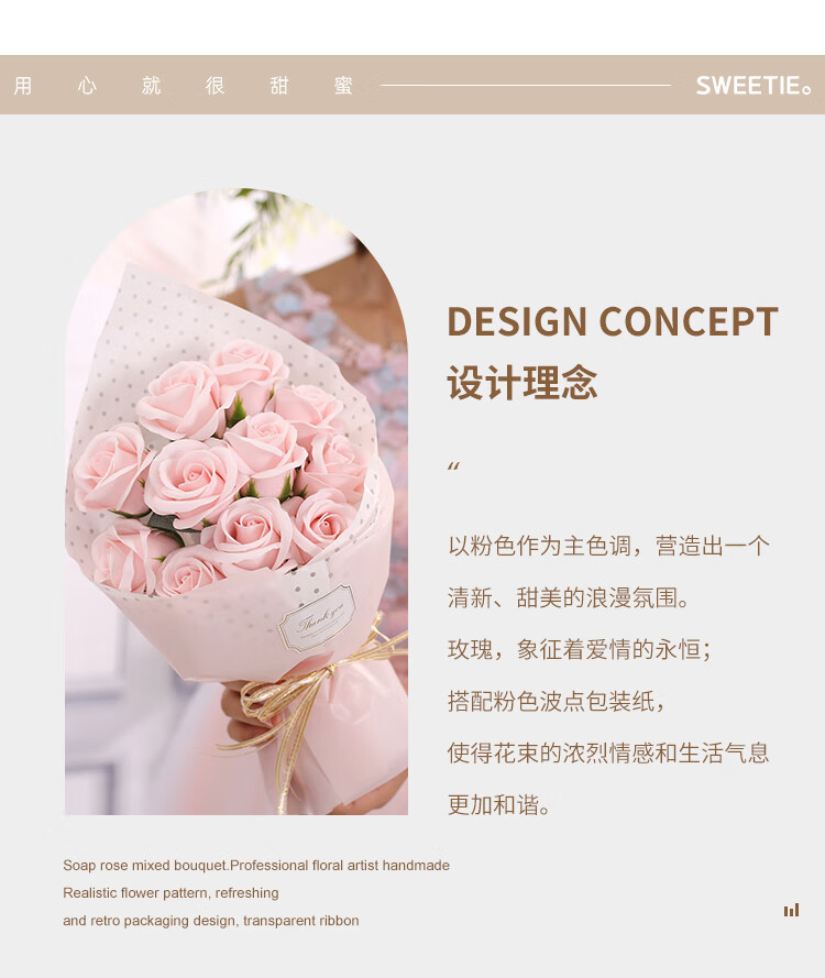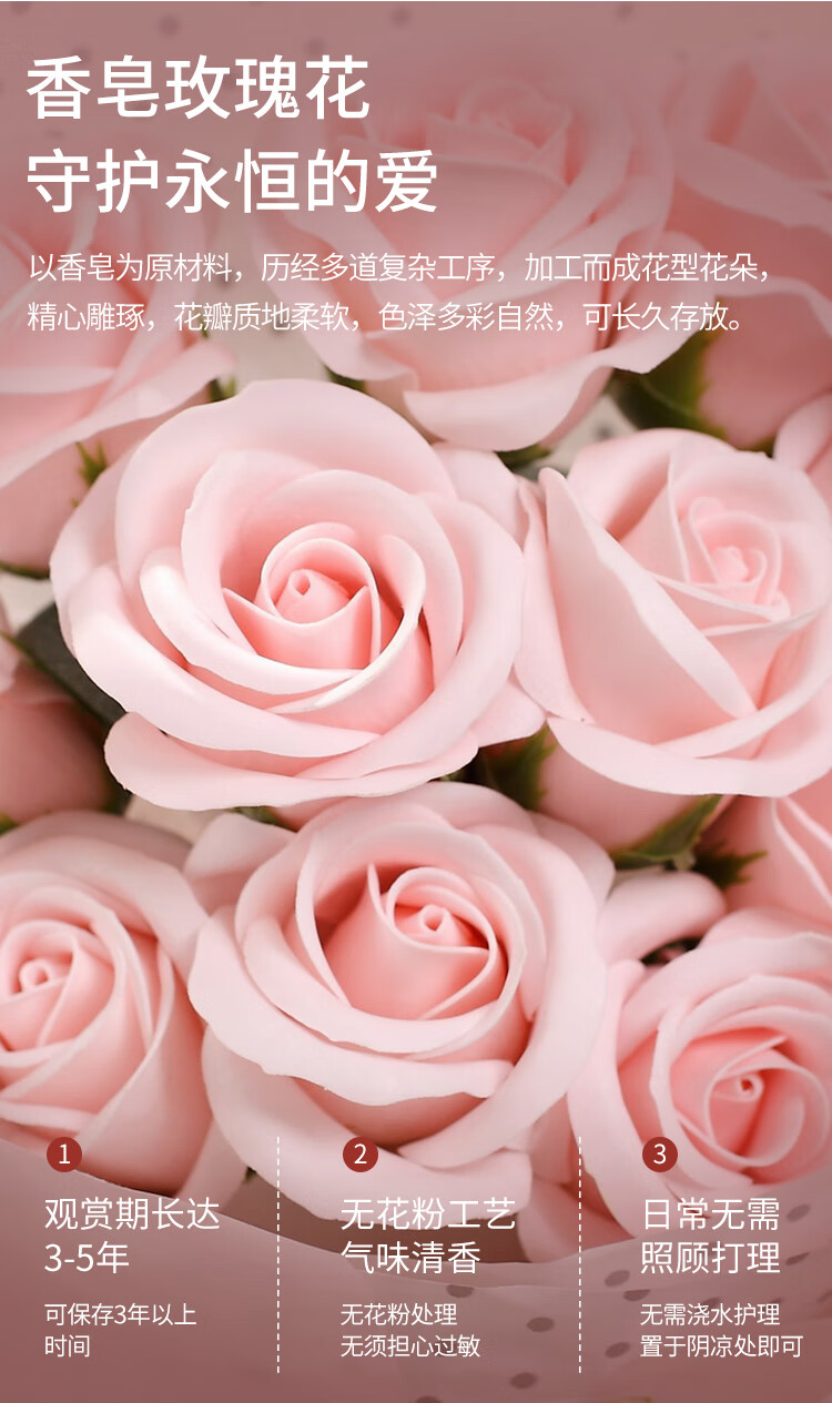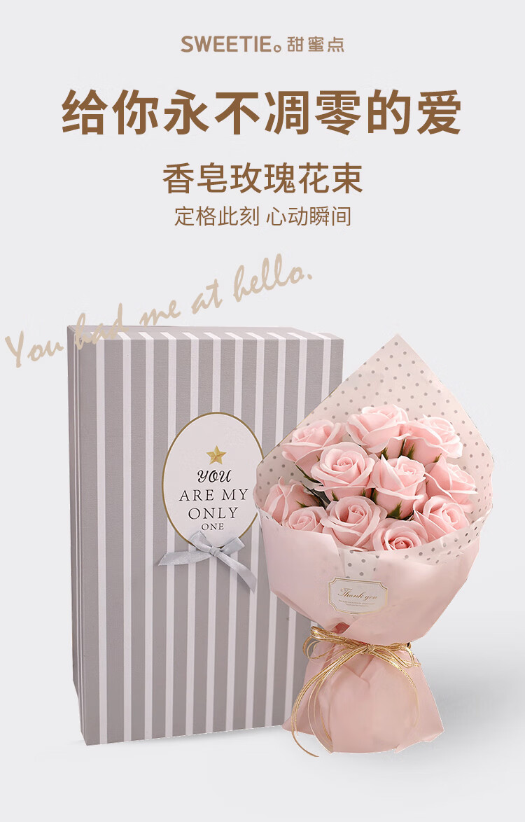 商品名称:初朵11朵粉玫瑰香皂永生花鲜同城配送七夕情人节礼物送老师女朋友生日