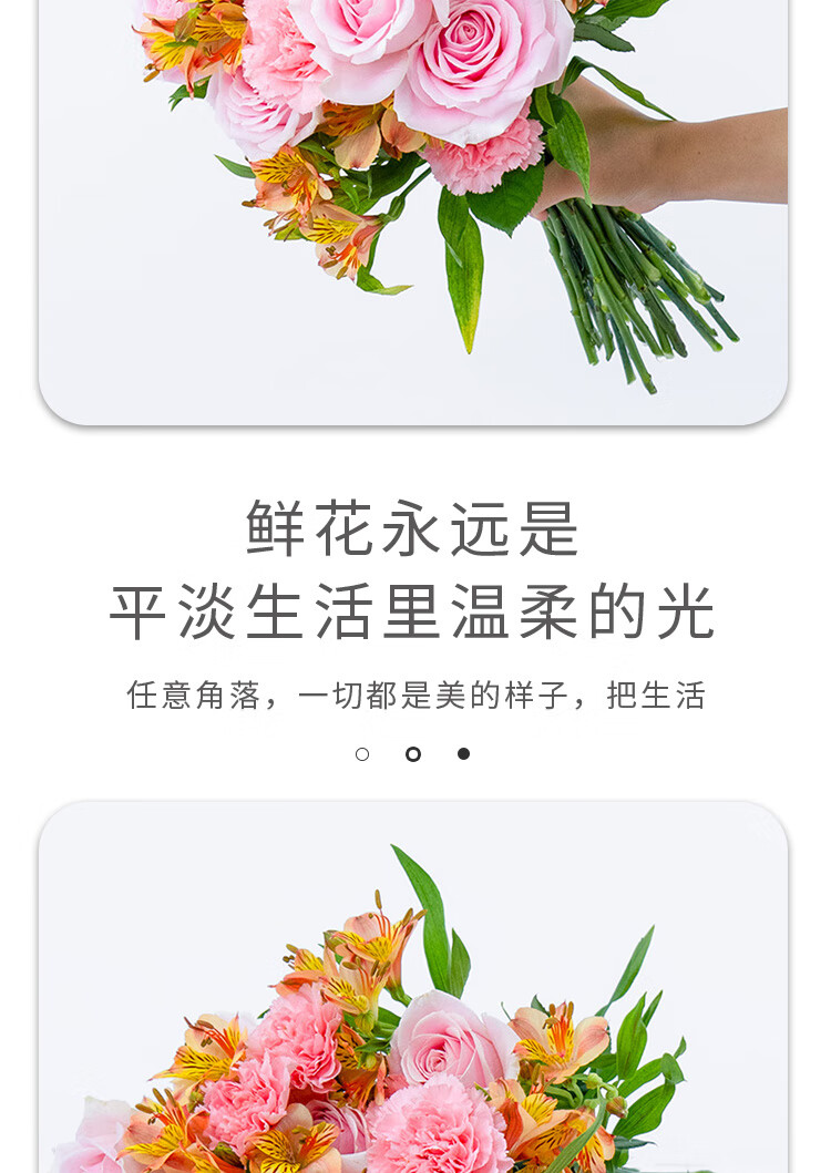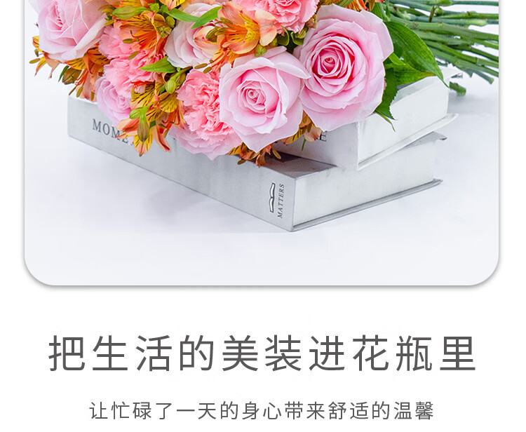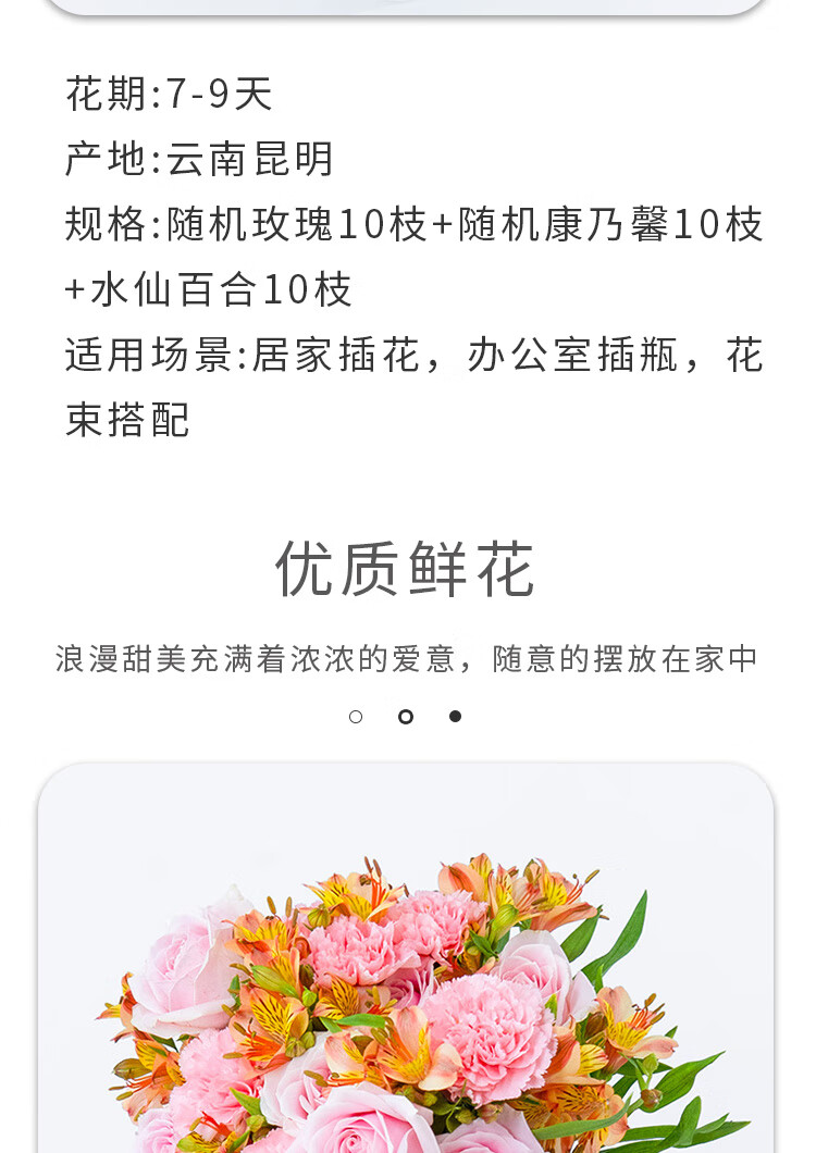 商品名称:钟爱玫瑰百合混搭鲜花鲜切花 随机玫瑰10枝+康乃馨10枝+六初花10枝