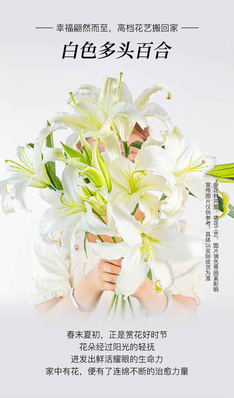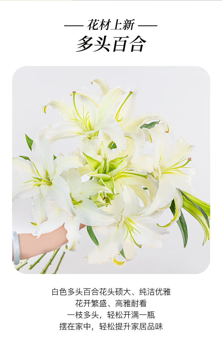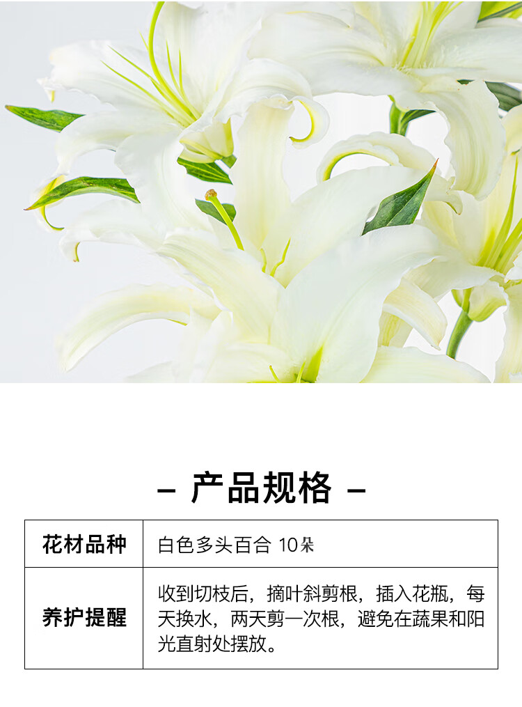 商品名称:鲜花香水百合花鲜花云南昆明基地源头直发鲜切花插花鲜花白色10朵