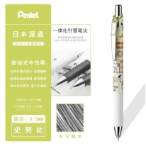 派通 日本Pentel顺滑速干中性笔BLN75系列卡通限定图案中性笔考试按动水笔0.5mm 淡彩黄杆-史努比