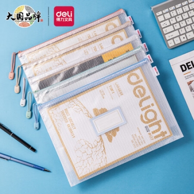 商品名称:得力(deli)5只A4防水网格学科拉链袋 彩色资料袋文件袋 试卷财务凭证收纳可放置标签 莫兰迪色系混色63484
