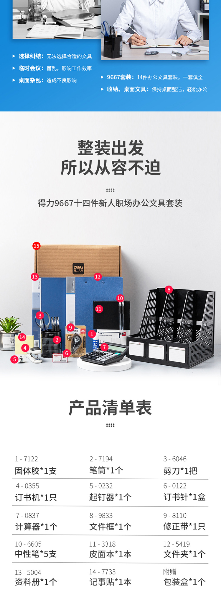 商品名称:得力(deli)新人入职套装 办公文具12件套/文具礼包/文具礼盒套装 办公用品
