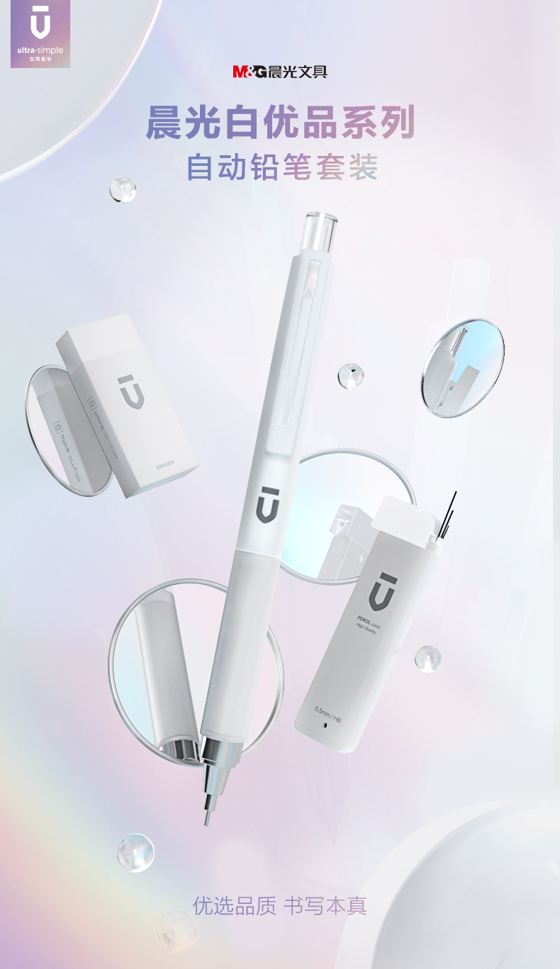 商品名称:晨光(M&G)文具自动铅笔三件套0.5mm 活动铅笔优品系列(铅笔+HB铅芯+少屑橡皮)学生考试开学文具礼盒HAMP1614