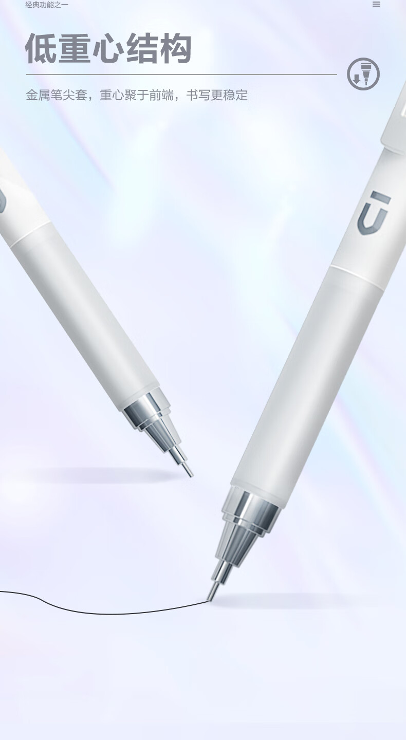 得力(deli)直液笔速干笔签字笔 尖锥头全针管子弹头中性笔 商务办公学生水笔走珠笔 书写不脏手 2支装-V96【备考中性笔】