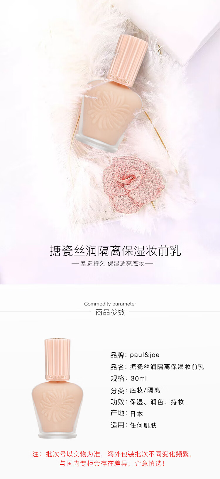 商品名称:PAUL&JOE丝润隔离霜妆前乳30ml 压嘴式银色砂糖粉01 spf15
