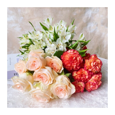 商品名称:鲜花玫瑰10枝+康乃馨10枝+六出花10枝鲜花云南基地源头直发