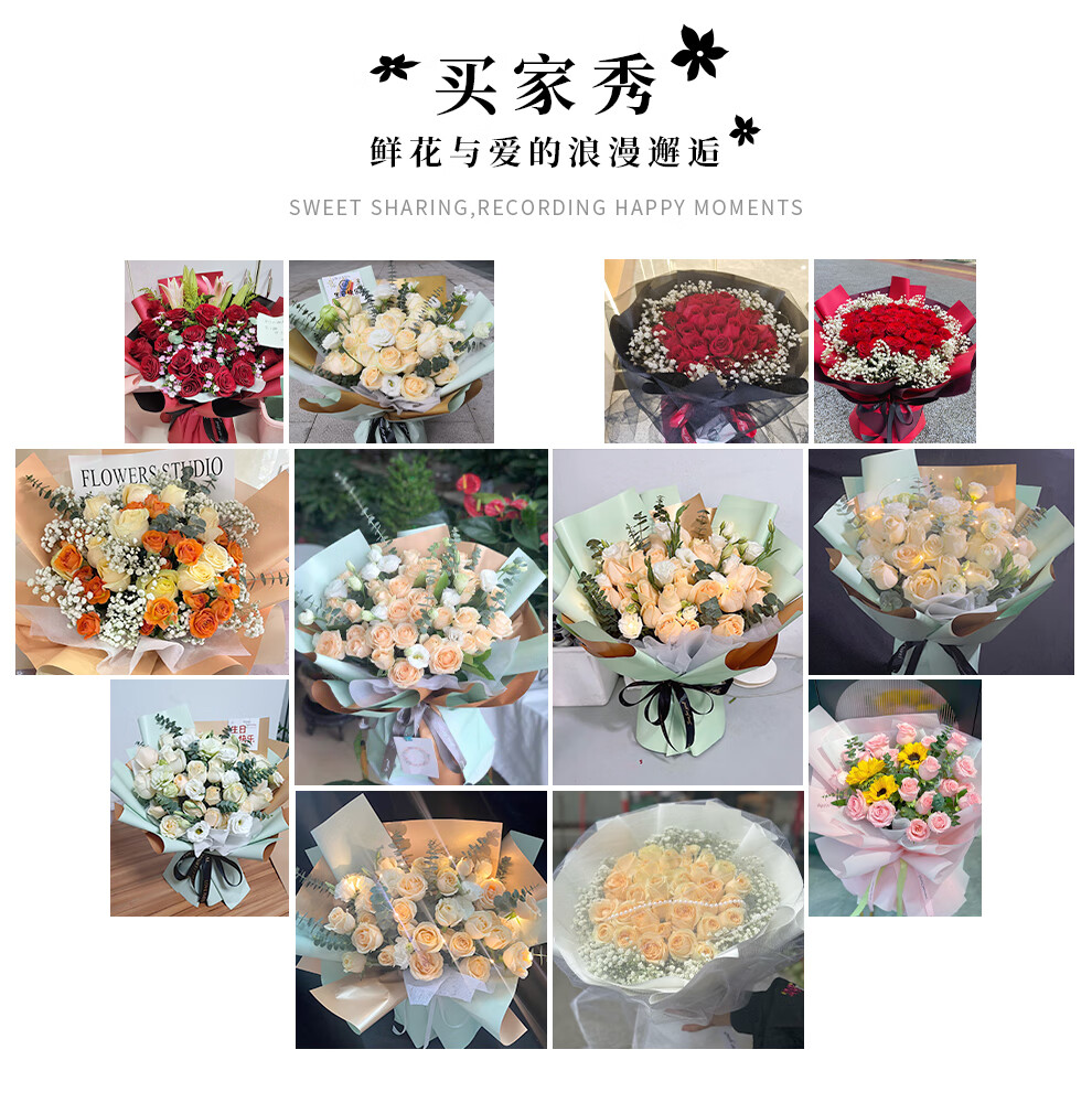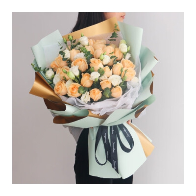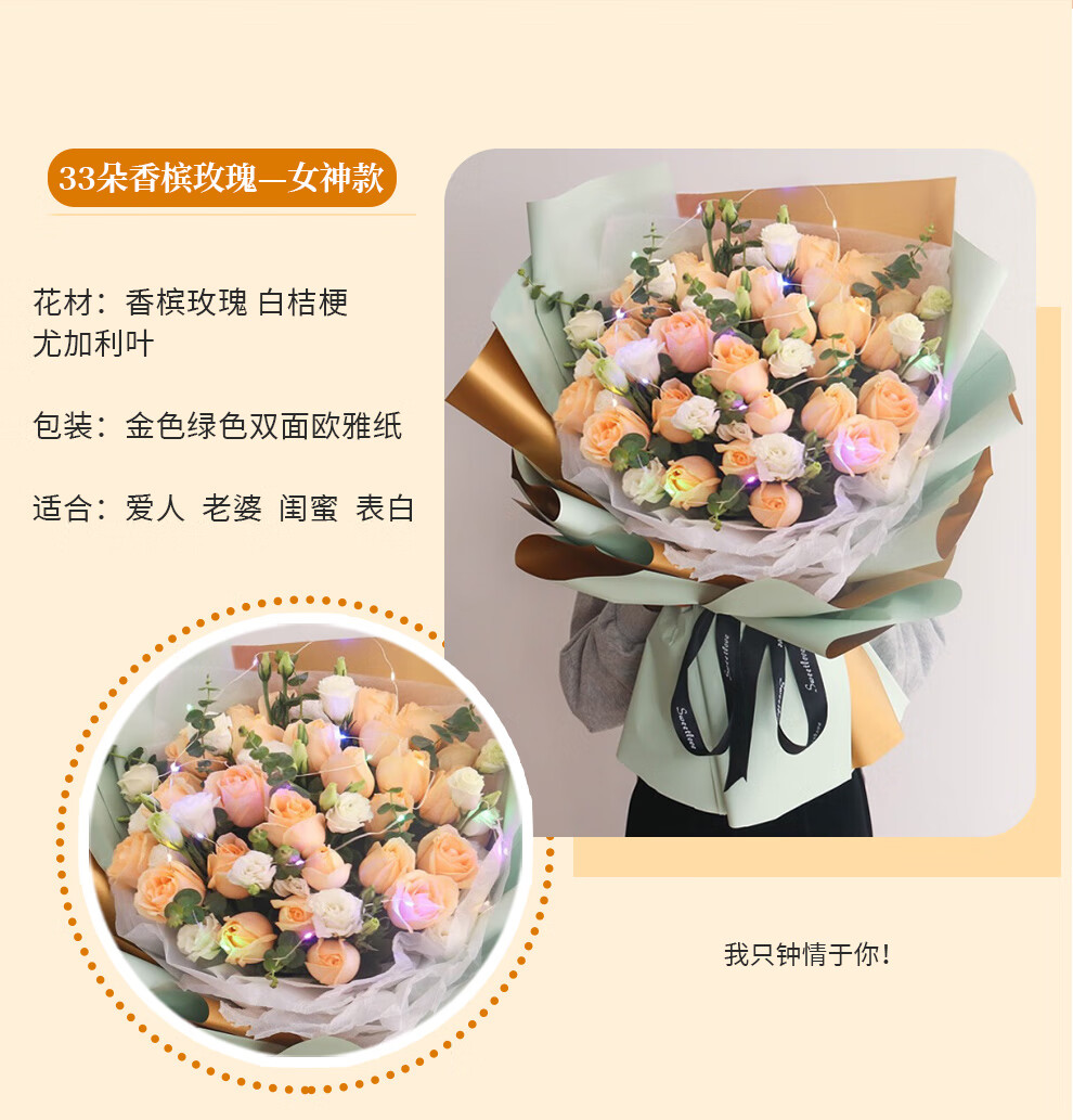 商品名称:领香鲜花速递33朵香槟玫瑰花束送老婆女友生日表白全国同城配送 33朵香槟玫瑰—女神款