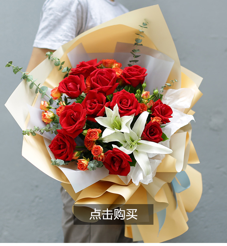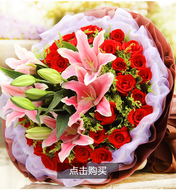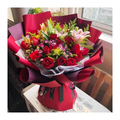 商品名称:花艺湾鲜花同城配送玫瑰百合花束表白送女友老婆长辈生日礼物全国花店 19朵红玫瑰6朵粉百合花束